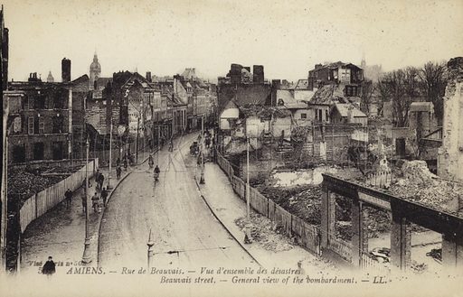 We reached Amiens at noon. It is a fine town, the prettiest, as well as the largest place I have yet seen here. Tramoars were rattling past, and business was very brisk, in fact, it wasn’t a bit like war time. Pretty girls were giving us the ‘glad eye,’ and throwing flowers at us, so that I felt quite young again. Many were the wishes that we should be billeted close to Amiens but we kept on marching, and left it miles behind. Again we are in a country village, miles from anywhere, but it is a better place than the last one.