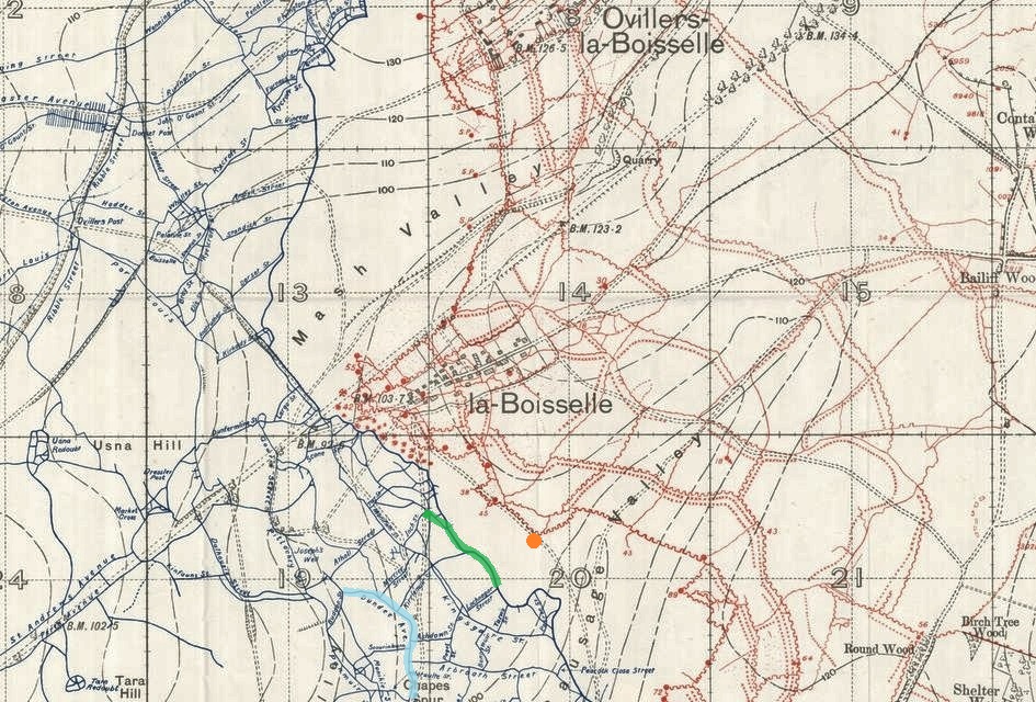 8:30/9:30pm: By evening, the West of La Boisselle and its Southern defences are cleared. The 9th Cheshires consolidate their position.